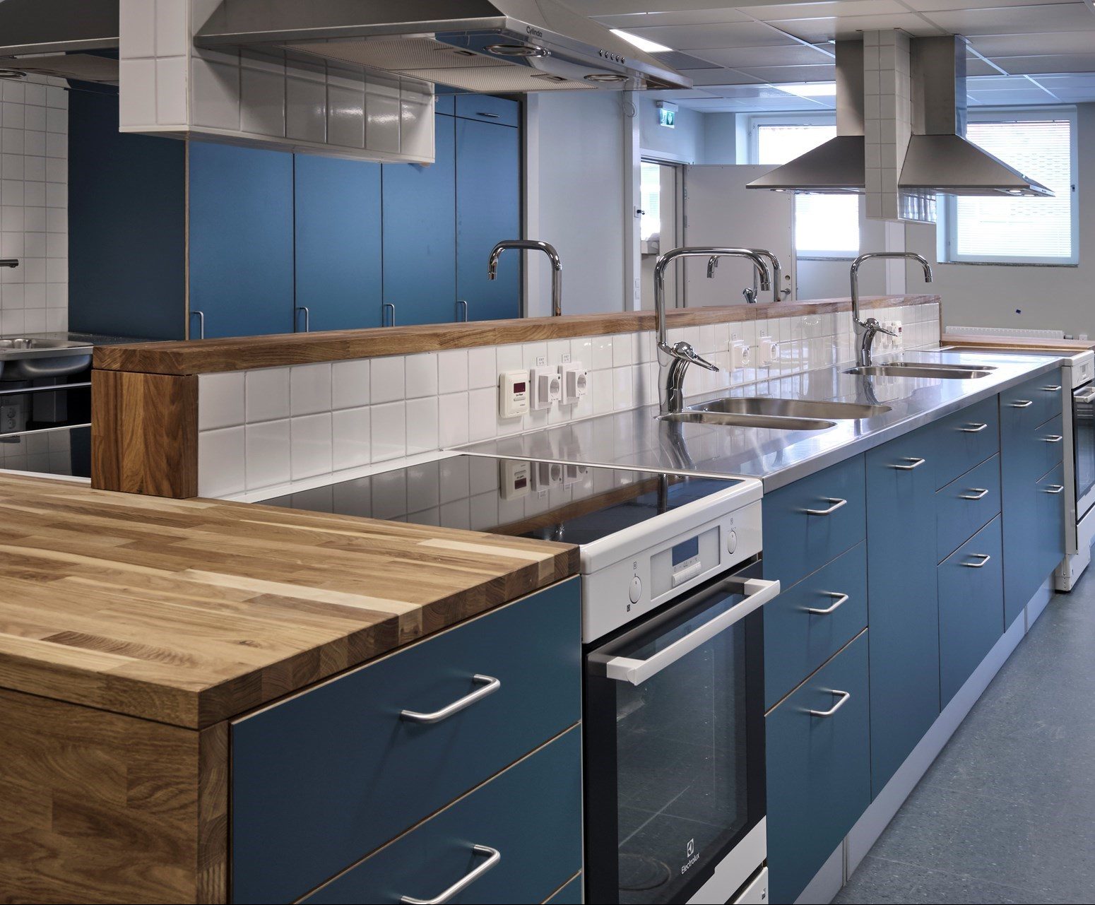 Matvarorna ska också ha sin plats. Avfall uppstår i samma takt som förut, och dessutom bör man utöver lämpliga material ta hänsyn till ljudet av köksmaskiner samt klirret och skramlet av kärl, bestick och kastruller där elever arbetar. Vi på AD MediCal ser till att ni får inredning som är välbyggda i hållbara material, kombinerat med bänkskivor i rostfritt. Säkert, hygieniskt och hållbart.